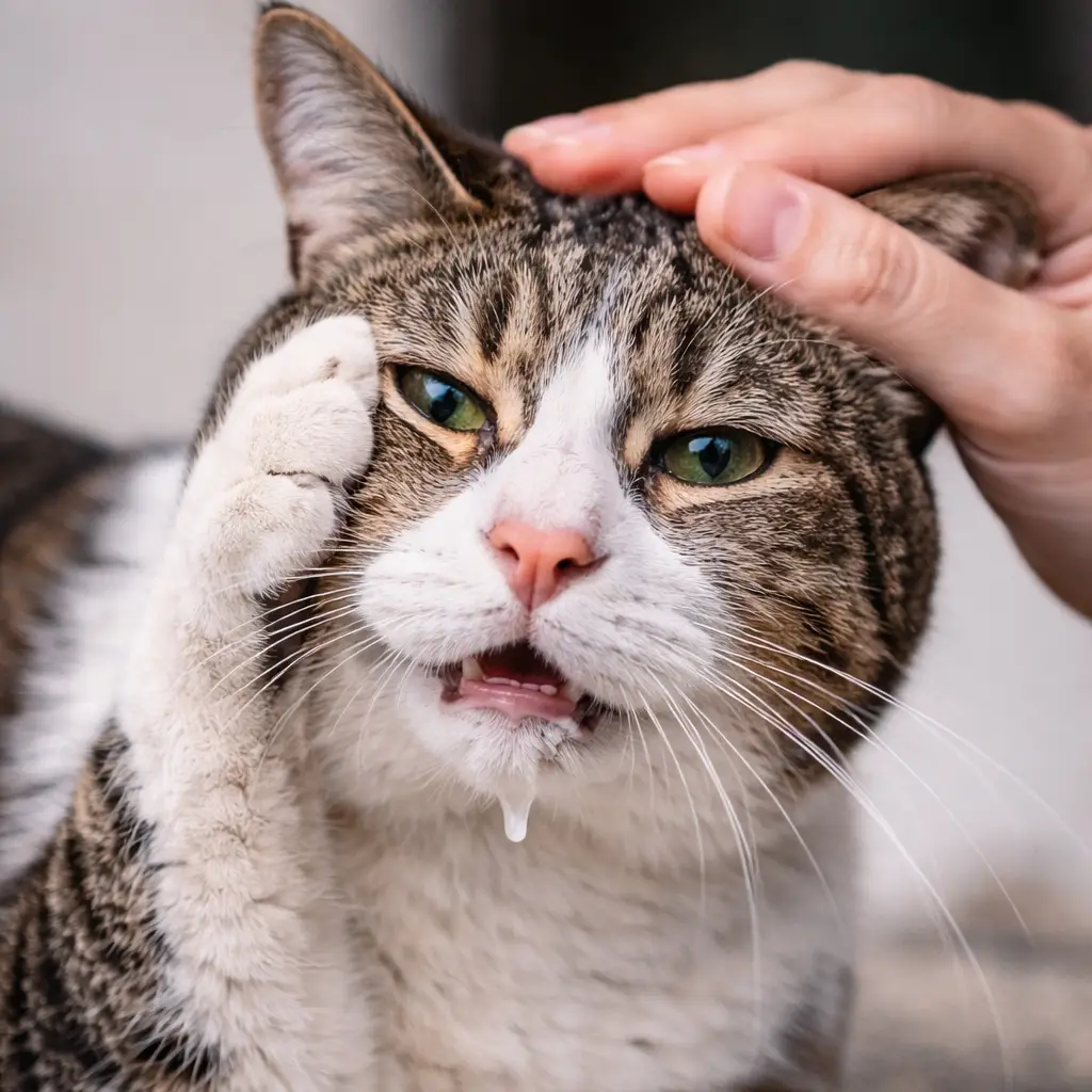 Se toca la boca con la pata, babea o tiene la cara hinchada